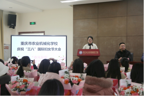 随后,校长陈长法在讲话中诚挚致敬巾帼力量,他提到,在农机校这支勇毅前行的队伍中,女同胞是当仁不让的主力军,大家勇挑重担,踔厉奋发,过去一年中有36人次获得校级、区级表彰,10余人荣获市级以上荣誉,助力学校取得41项市省级以上标志性成果。“伍能英、周洪霞老师带领学生在世界职业院校技能大赛母婴照护赛项总决赛中勇夺金牌;胡雯媚、罗珍珍、成宏霞……”,他如数家珍般列举女教职工的贡献,并强调:“学校为有你们这样爱岗敬业、成绩斐然的巾帼队伍而感到骄傲与自豪!”