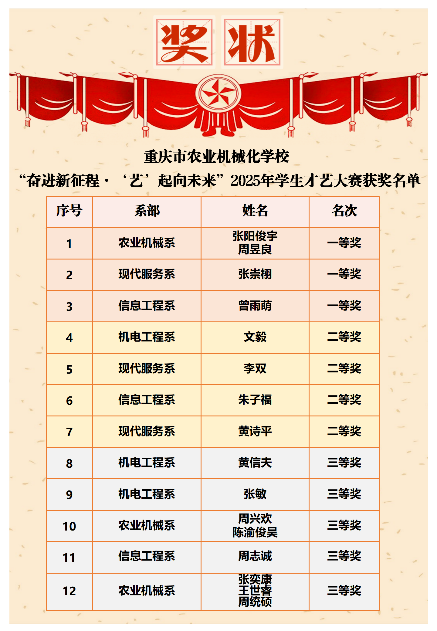 经过激烈的比拼,农业机械系的张阳俊宇和周昱良组合、现代服务系的张崇栩同学、信息工程系的曾雨萌同学荣获一等奖。