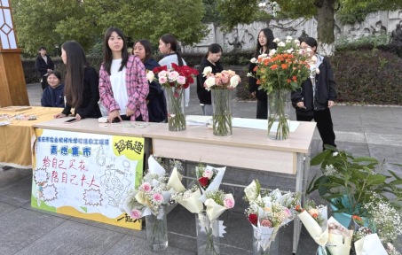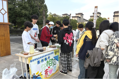 活动现场热闹非凡,原本开阔的广场变身创意集市,各类摊位错落排布、琳琅满目。同学们穿梭在各个摊位间挑选商品,与摊主讨价还价的声音此起彼伏,充满烟火气。传统投壶游戏区人气高涨,同学们在 2.5 米外凝神投掷,体验传统文化魅力,成功投中者还能赢得美味蛋糕,欢声笑语不断;鲜花摊位上,一束束价格亲民、精心搭配的鲜花,又为集市增添了一抹浪漫的色彩。