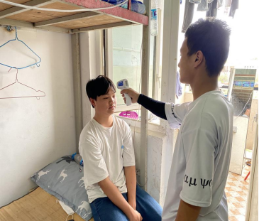 夜晚,老师们在寝室与同学们聊天拉家常。从俄乌战争到身边疫情,从趣闻轶事到天寒添衣,声声叮咛,万分嘱托,学生也表示坚持抗“疫”到底。