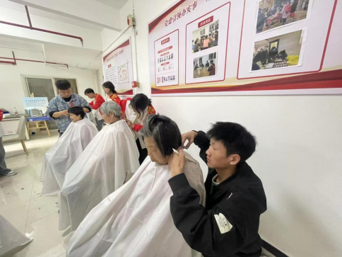 在理发过程中,志愿者们不仅认真地为老人修剪头发、修整胡须、梳理头型,还耐心地聆听老人们讲述他们的生活经历和感受,并给予他们温暖的鼓励和关怀,现场一派温情。有些老人主动拿出自己平时节省下来的零钱或水果等物品想要回报志愿者们,但都被婉言谢绝了。