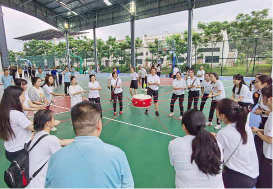 “击鼓颠球”为本次比赛的高潮部分,该项目充分体现了小组团结协作能力,小组队员用力拉颠绳,围成一个圆圈,做到了“心往一鼓想,劲往一处使”,比赛氛围十分浓烈!