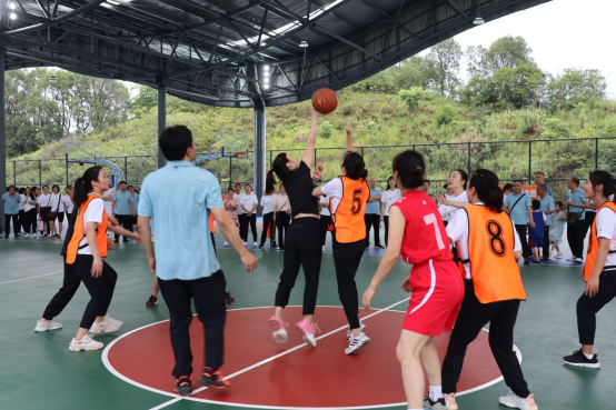 最后压轴项目是篮球对抗赛,经过报名、选拔,最终成立了4支男子篮球队伍和2支女子篮球队伍。6支队伍比赛投入,进行了激烈而和谐的比赛。