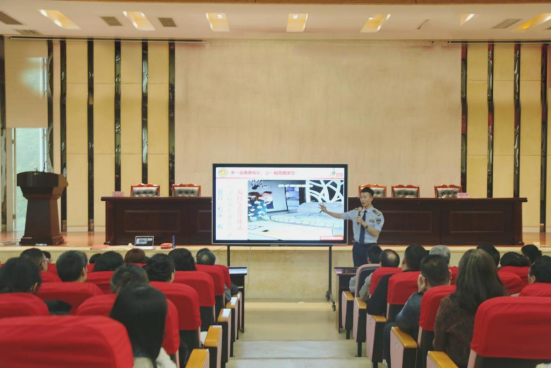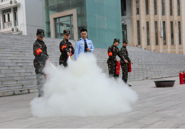 4、特邀重庆市利民防火宣传培训中心教官到校开展全校教职工消防知识讲座,普及急救方法及灭火器使用方法等知识。