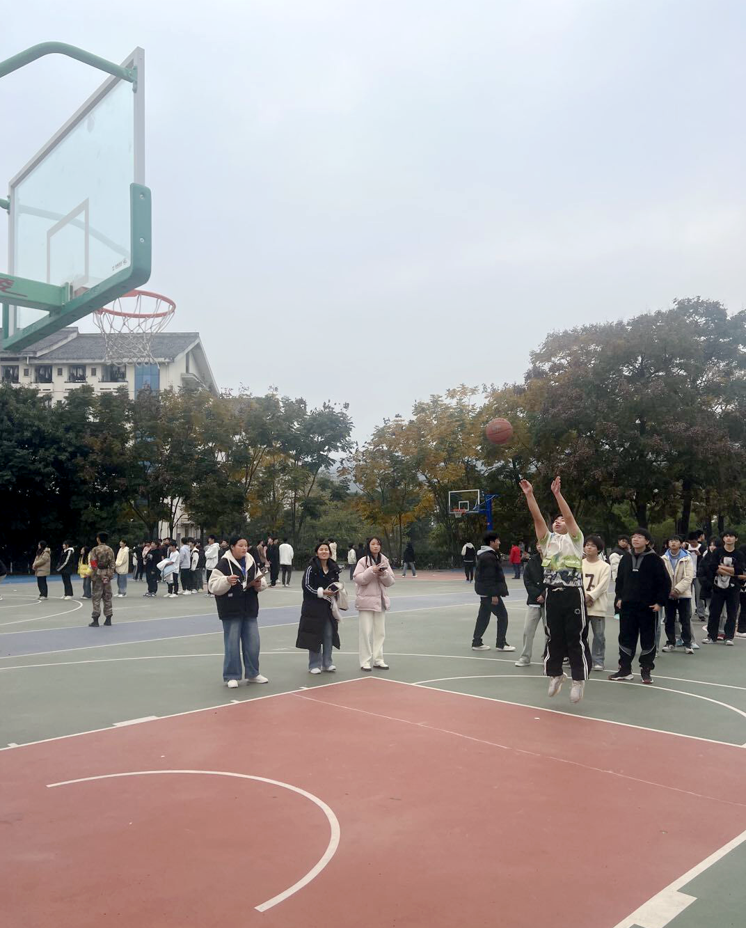 此次比赛以班级为单位,由男女生各10人、班主任共21人组成班级队伍。哨音响起,荣耀之争,各班同学排好队,依次投篮,选手们不断调整出手弧度和力度,选择最佳的投篮姿势。每当篮球在空中划出一道优美的弧线稳稳落入篮筐,现场观众的喝彩声瞬间点燃了全场。班主任老师的加入,为整个队伍注入了强心剂,在篮球场上,同学间、师生间的情谊也得到了升华。