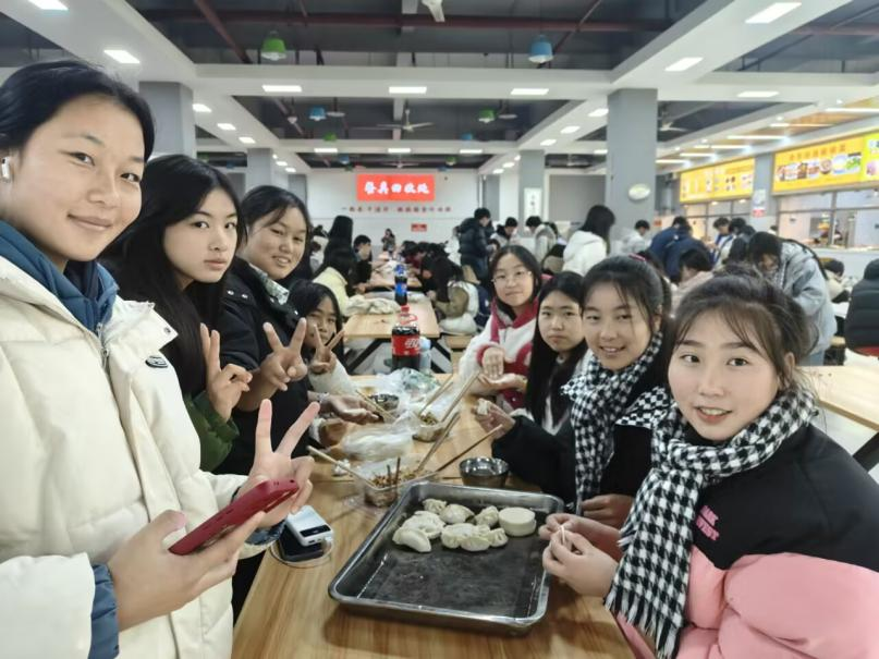 同学们在老师的带领下,前往“农耕文化地”,采摘班级自种蔬菜,制作手工水饺。从采摘蔬菜、剁馅、包饺子到调料蒸煮,学生全程动手参与,有效配合。当一盘盘热气腾腾的饺子端上桌,浓浓的饺子香溢满空气,孩子们满足地品尝着自己的劳动成果,这一刻,师生愈发感受到浓浓的节气氛围和冬日温暖!