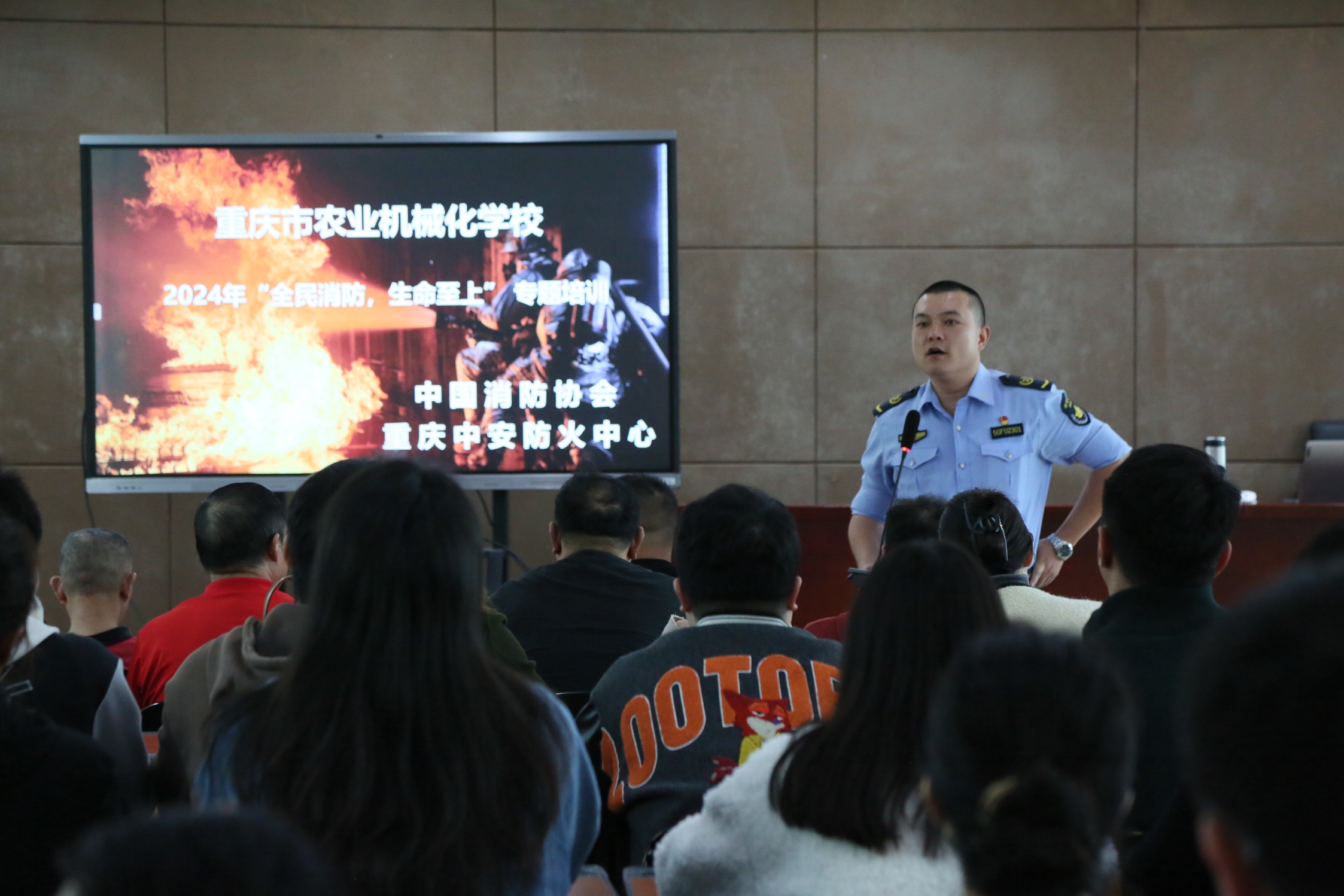 为进一步增强教职工消防安全意识和应急处置能力,预防火灾事故的发生,11 月 14 日,我校特邀中安防火中心的蒋教官到校开展消防应急暨安全知识培训,全体班主任、食堂从业人员、宿舍管理员及学生代表参加了培训,竭力构建校园消防安全“防火墙”。