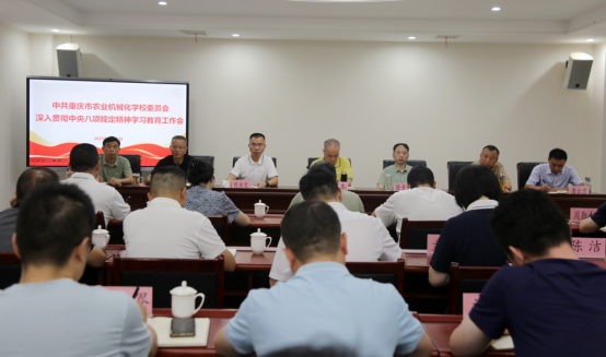 6月18日,市农机校党委在行政楼三楼二会议室召开深入贯彻中央八项规定精神学习教育工作会,贯彻落实工作部署。校领导班子成员、中层领导干部参会,会议由校党委书记范本主持。